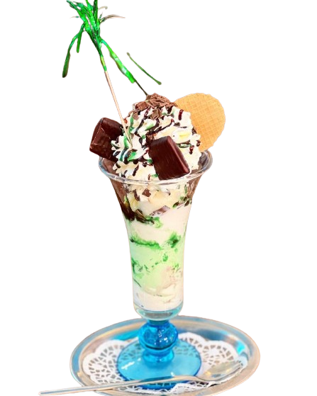 Cremiges Schokoladeneis mit frischer Minze und einem Hauch Zartbitterschokolade – ein raffiniertes Geschmackserlebnis.