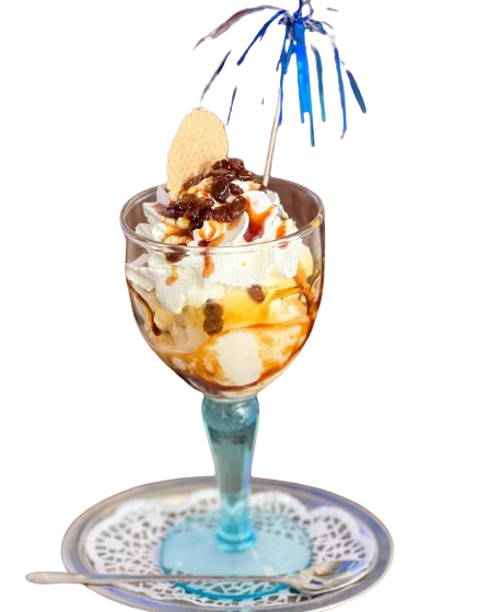 Vanilleeis mit Rosinenstücken, Schokoladenüberzug und Karamell – ein mediterraner Genuss.